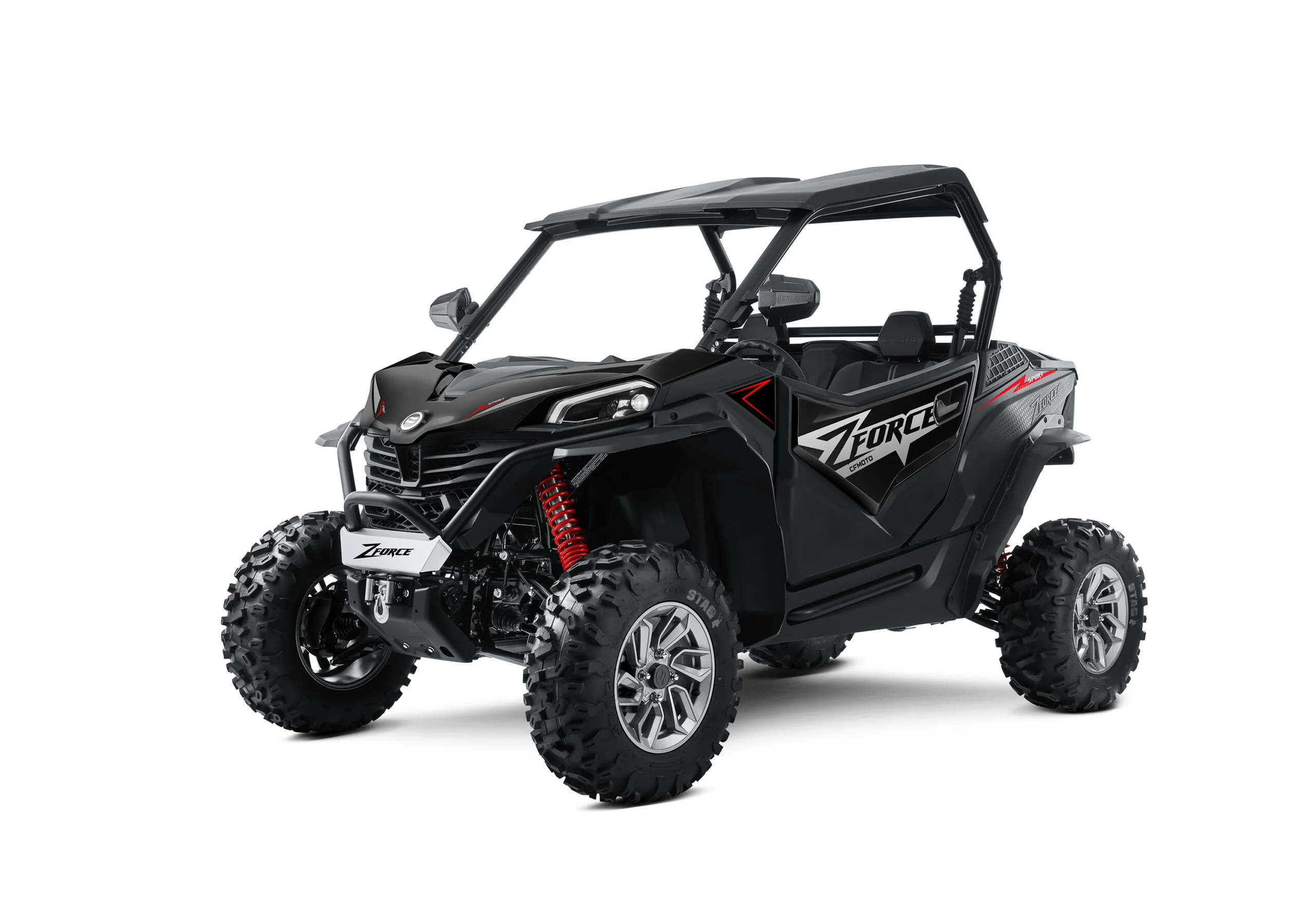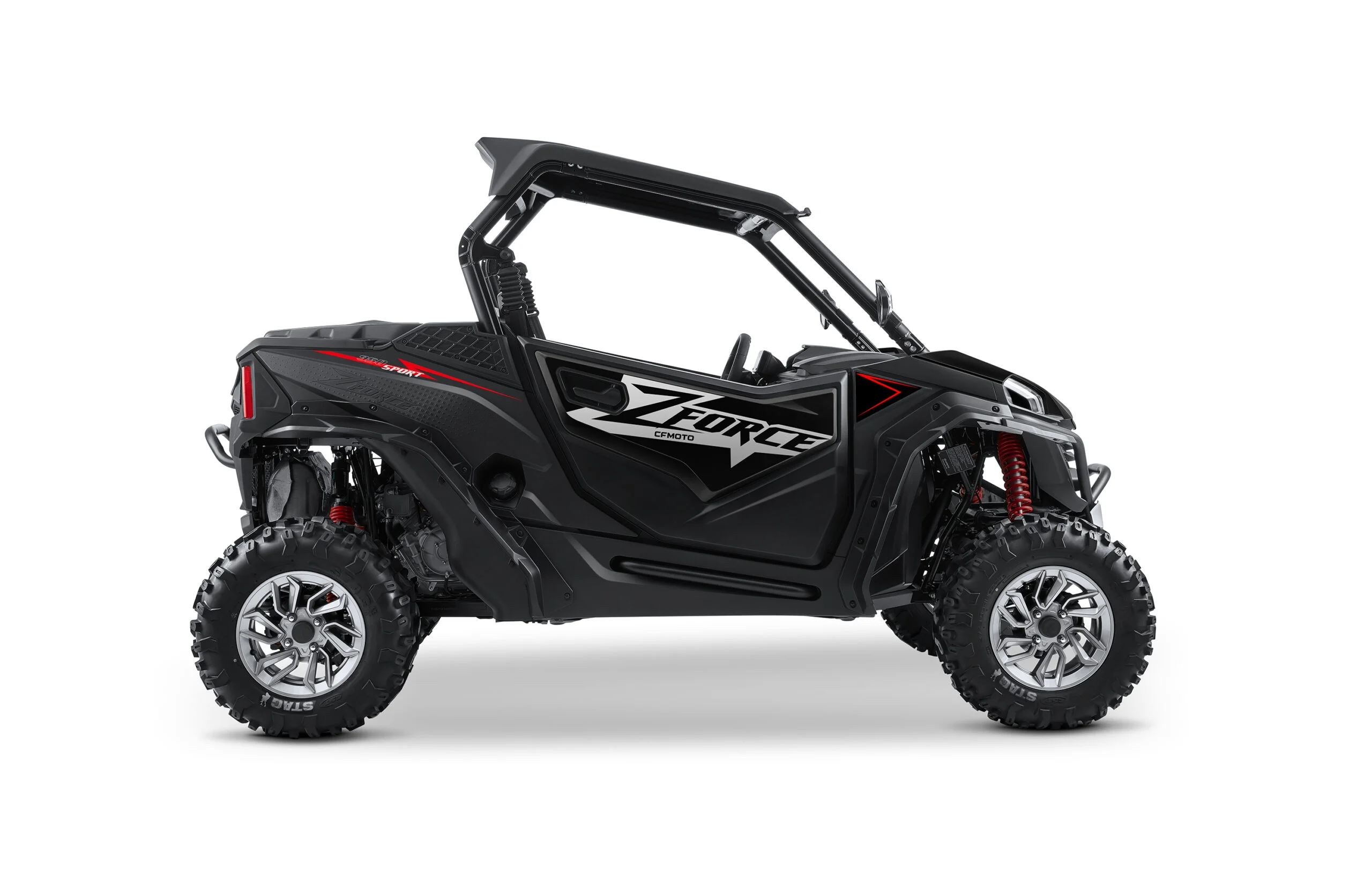 El diseño agresivo y aerodinámico del ZFORCE 950  no solo es visualmente impresionante, sino que también mejora la eficiencia aerodinámica y la capacidad de maniobra. Los asientos ergonómicos y ajustables ofrecen comodidad durante todo el día, mientras que el amplio espacio de almacenamiento permite llevar todo lo necesario para tus aventuras.